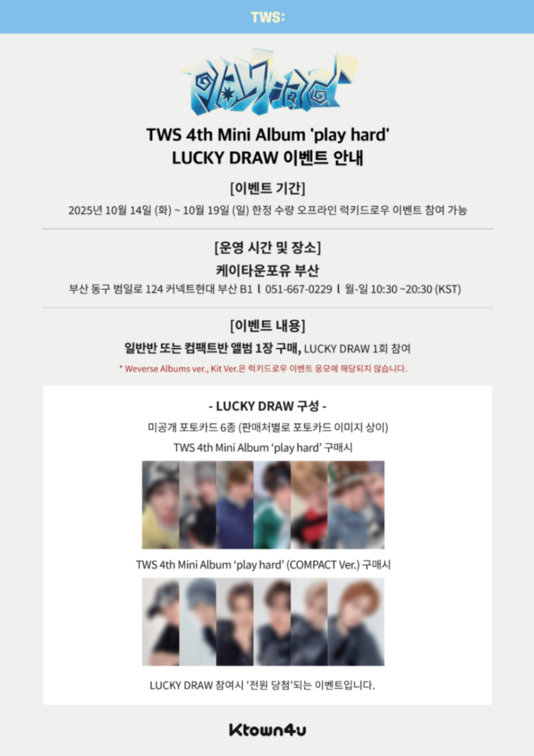 [Ktown4u Busan] 2025.10.14 ~2025.10.19 TWS OFFLINE LUCKY DRAW