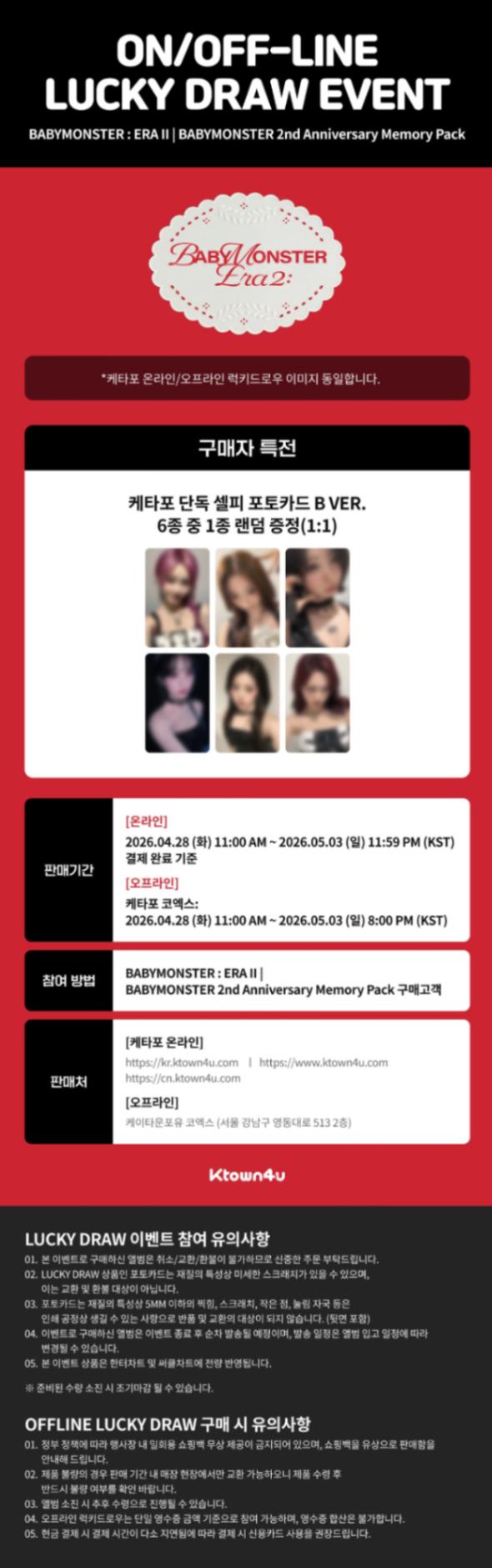 [Ktown4u coex] 2026.4.28 ~2026.5.3 BABYMONSTER OFFLINE LUCKY DRAW (2F)