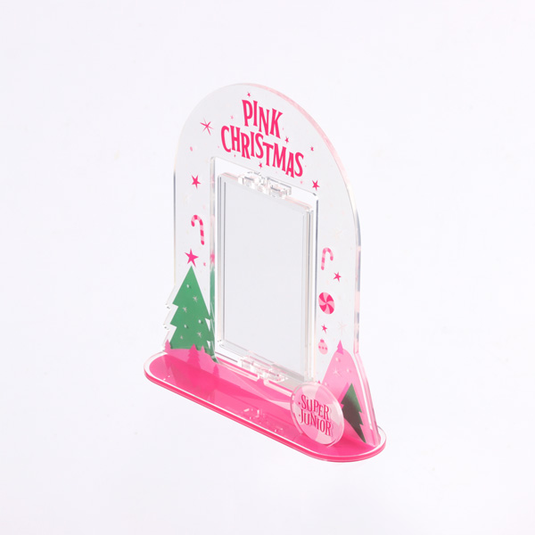 产品名称:粉色圣诞亚克力旋转支架套装 (框架1个,照片卡持有器部件3个,旋转部件2个,团体名称部件1个,底座1个,双面照片卡1个)