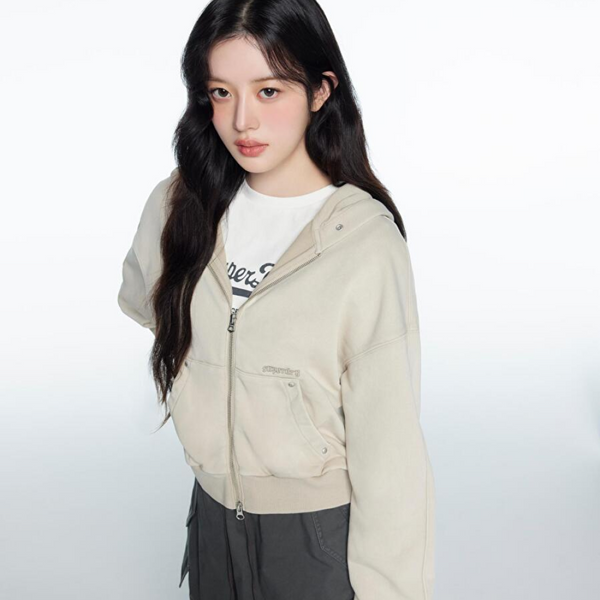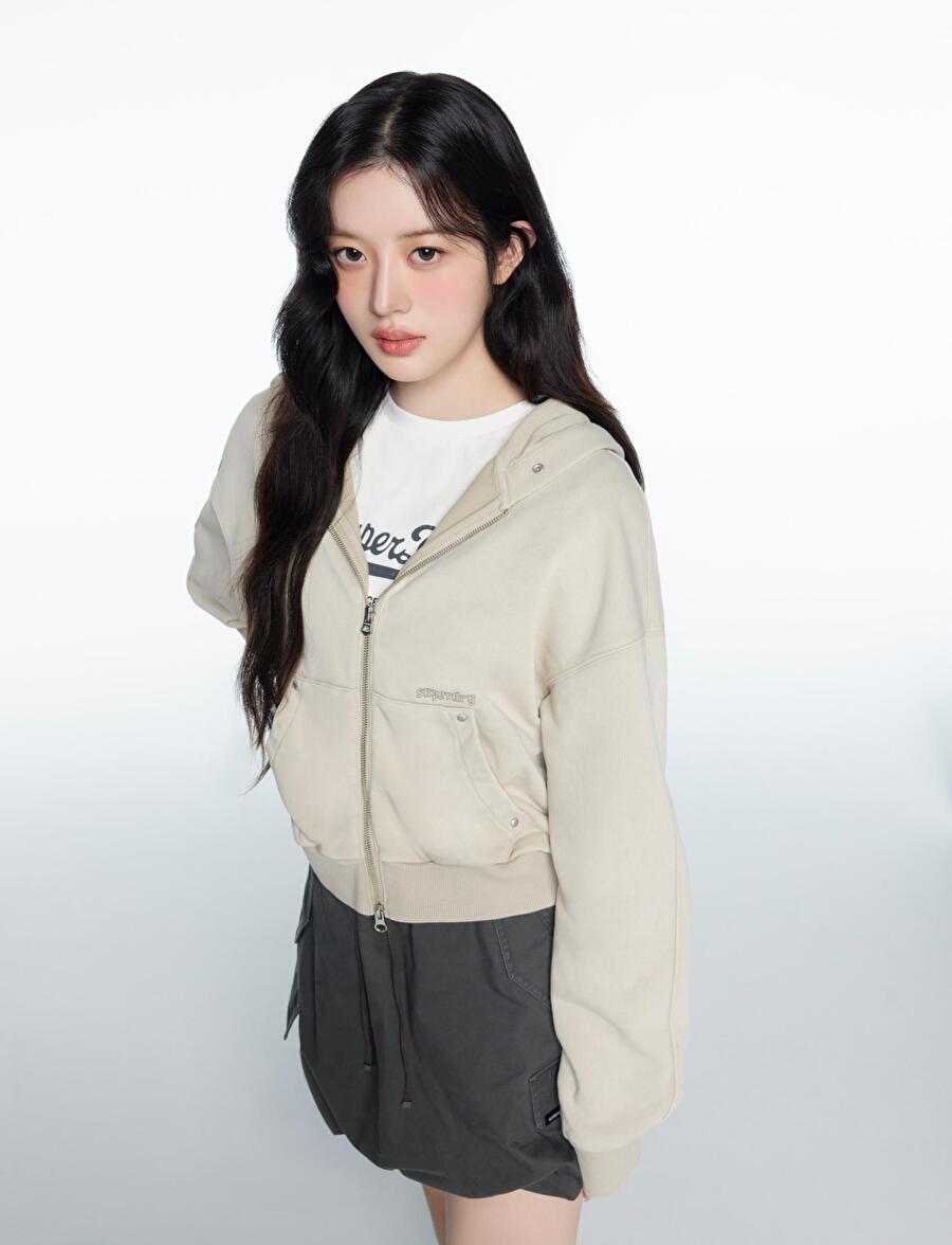 [Superdry] W WASHED ZIP-UP HOODIE_BEIGE