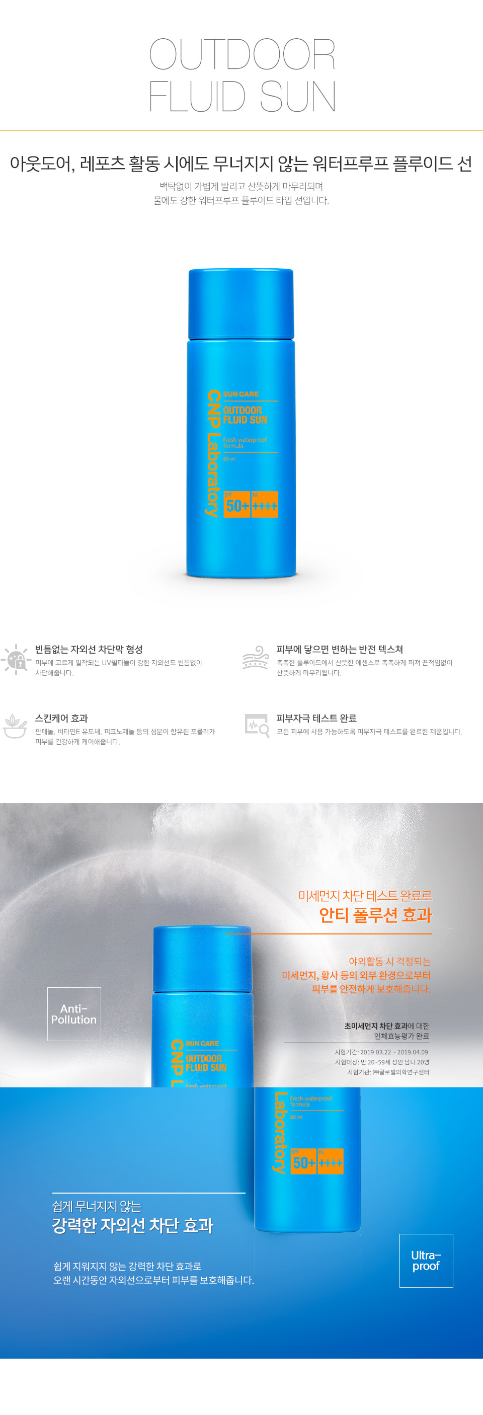 详细情报运营方针客户评论NOTICE* 商品外盒是为保护商品防止冲击而制作的,在包装/运输过程中可能会产生划痕及褶皱、变色等现象,该现象不能作为商品的退换理由。 [CNP] OUTDOOR FLUID SUN PART * The outer case is just for protecting goods. (scratches and discoloration on the case can not be the reason for exchanging or returning) INFORMATION 商品情报提供告示商品名 : 【希恩派】超强防水防晒清爽型防晒霜 75ml原产地 : Korea制造/进口 : (주)엘지생활건강 (주)엘지생활건강质量保证标准 : 依照相关法律及消费者纠纷解决规定AS中心热线 : Ktown4u, 02-552-0978
