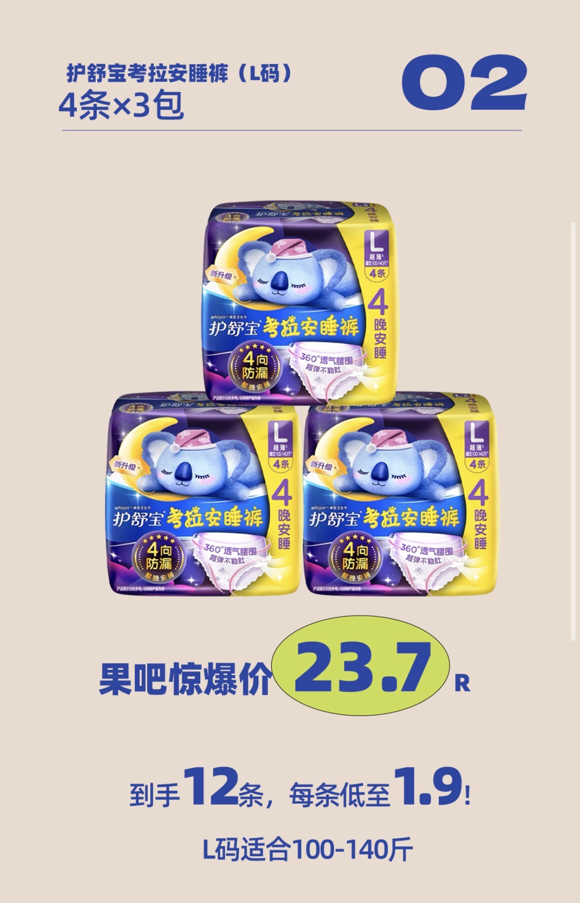 [定金 SET B 护舒宝考拉安睡裤(L码) 4条*3包 特典] 果吧百万补贴-护舒宝卫生巾SET _百度田柾国吧