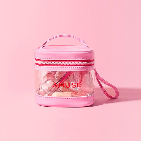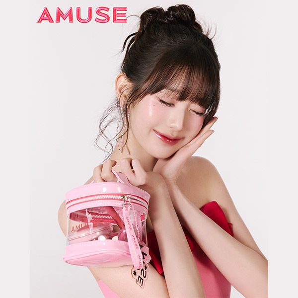 [全款] [AMUSE] 我的AMUSE化妆包 套装 (润光果冻小粉盒气垫 01 纯粉白色 + 果冻唇釉 03 裸珊瑚色)_张元英中文首站
