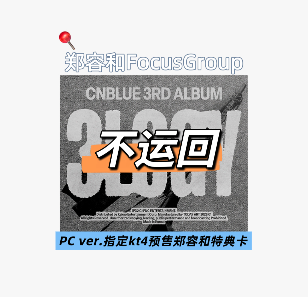 CNBLUE[拆卡专 指定郑容和特典卡] CNBLUE - 3rd Album [3LOGY] (POSTCARD Ver.)_郑容和FocusGroupRMB46.87发行日2026-01-07预计入库时间2026-12-31积分8Goods codeGD00155024售销记录