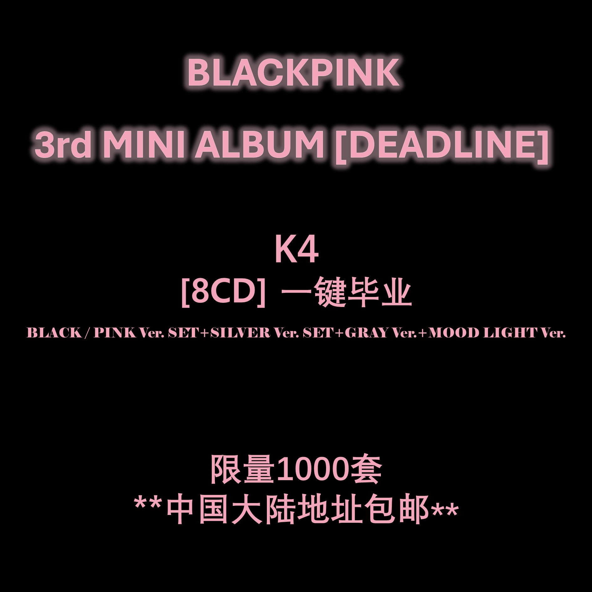 [全款 裸专 中国大陆包邮] [一键毕业] [8CD] [Ktown4u特典赠送] BLACKPINK 3rd MINI ALBUM [DEADLINE] (BLACK / PINK Ver. SET+SILVER Ver. SET+GRAY Ver.+MOOD LIGHT Ver.)_BLACKPINK吧官博