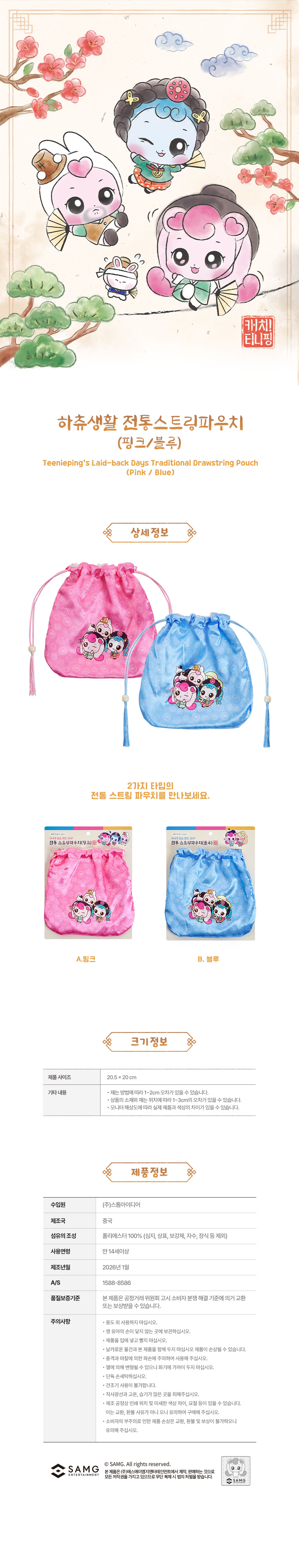 [Teenieping] Hachu Life_Traditional String Pouch 2type