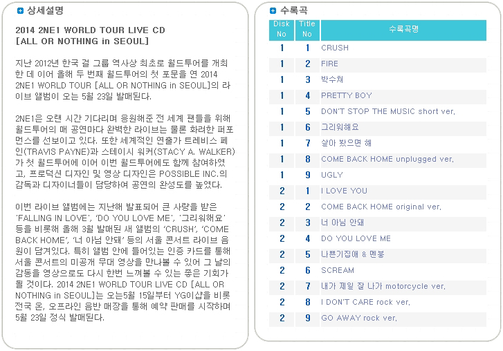 2NE1 - 2014 2NE1 WORLD TOUR LIVE CD [ALL OR NOTHING in SEOUL] |