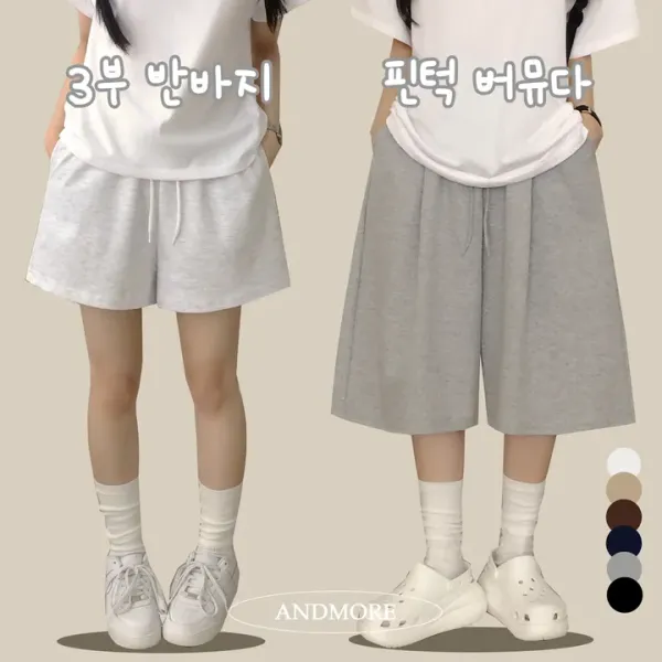 [ANDMORE] 松紧腰百慕大训练短裤(3分裤) (5color)