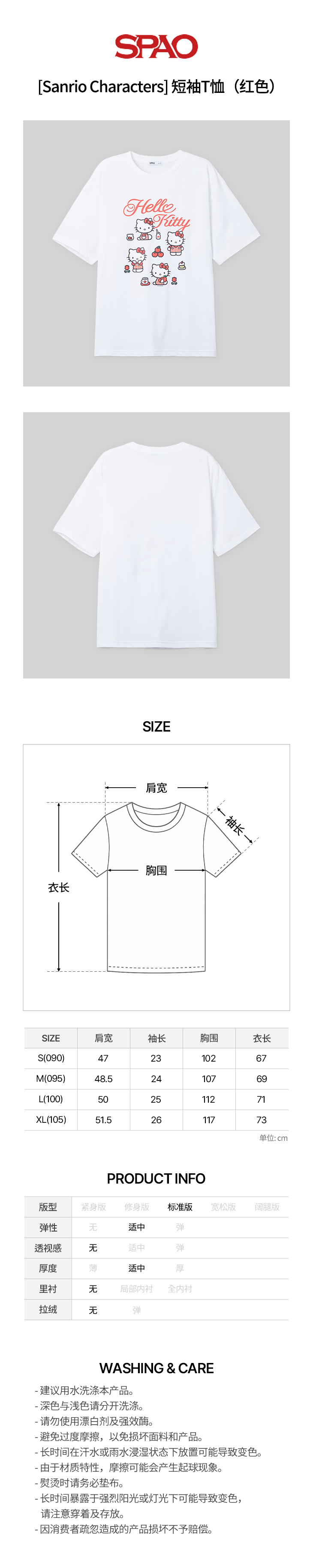 [SPAO] [Sanrio Characters] 短袖T恤(红色)