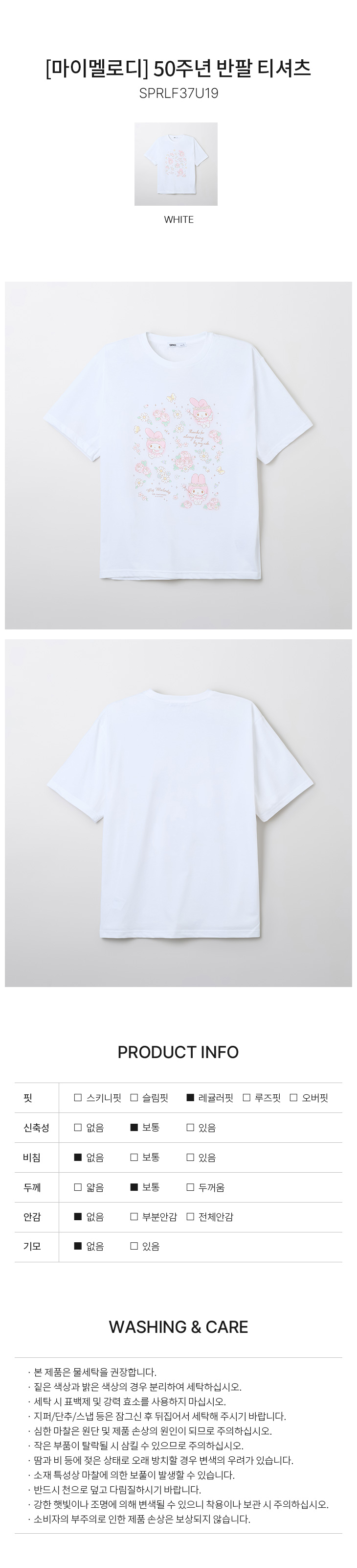 • 商品名 : [SPAO] [My Melody] 50周年短袖T恤(白色)