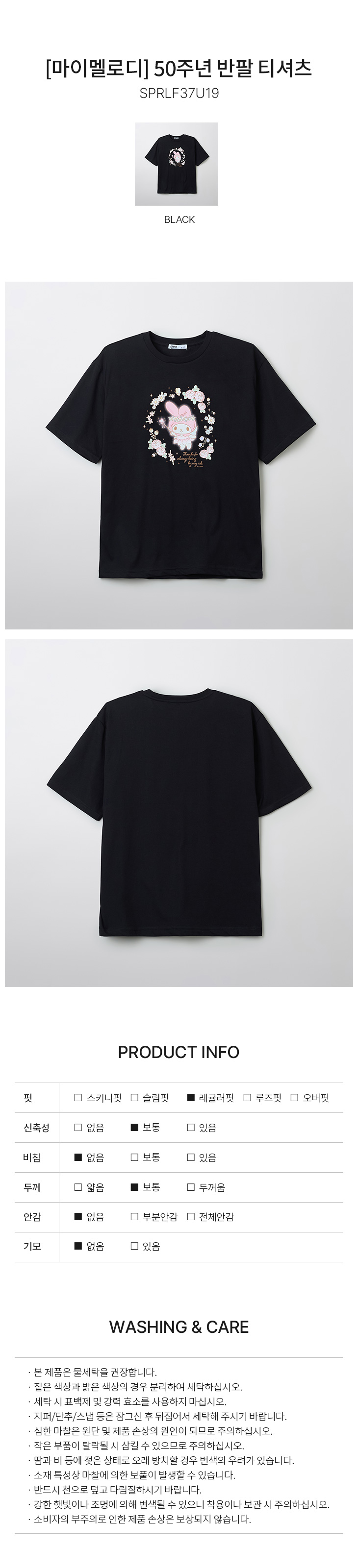 [SPAO] [My Melody] 50周年短袖T恤(黑色)