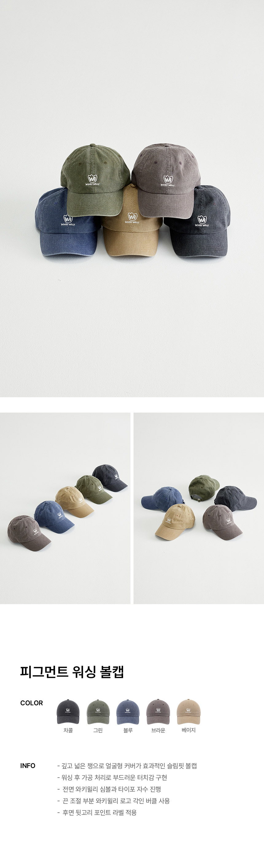 [Wacky Willy] [25FW] Pigment Washed Ball Cap Charcoal
