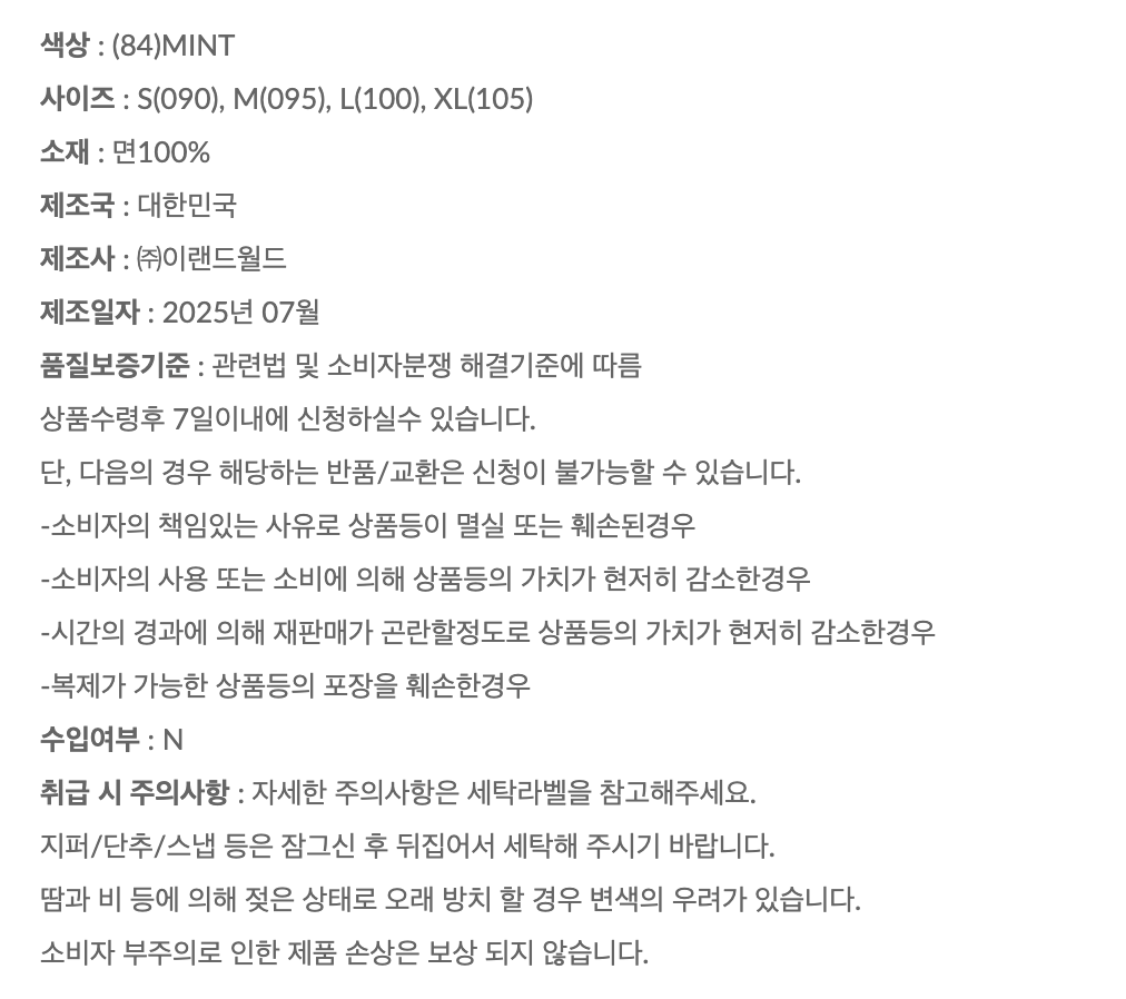 详细情报运营方针客户评论NOTICE* 商品外盒是为保护商品防止冲击而制作的,在包装/运输过程中可能会产生划痕及褶皱、变色等现象,该现象不能作为商品的退换理由。[SPAO] [Blue Lock] Short Sleeve T-shirt (Mint) PART INFORMATION 商品情报提供告示商品名 : [SPAO] [蓝色监狱] 短袖T恤(薄荷色)原产地 : Korea制造/进口 : (주)이랜드월드패션사업부 质量保证标准 : 依照相关法律及消费者纠纷解决规定AS中心热线 : Ktown4u, 02-552-0978