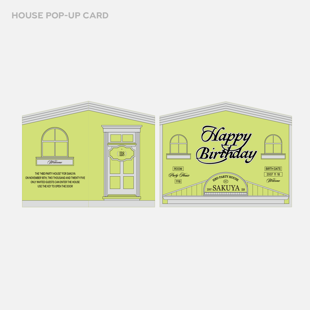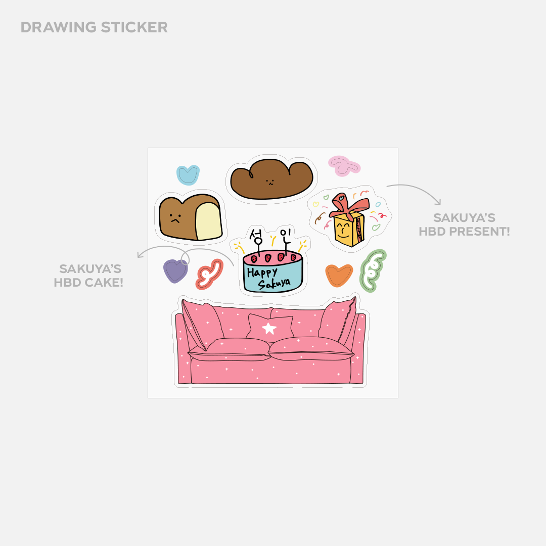 - 사이즈(CM) : 하우스 파우치 18x14.8, 팝업 카드 12.5x10, 스티커 9.5x9.5, 포토카드 5.5x8.5, 열쇠 아크릴 키링 3.6x6.1