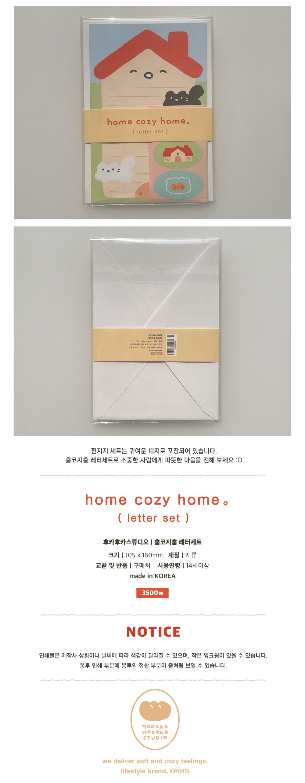详细情报运营方针客户评论NOTICE* 商品外盒是为保护商品防止冲击而制作的,在包装/运输过程中可能会产生划痕及褶皱、变色等现象,该现象不能作为商品的退换理由。[HOOKKA HOOKKA STUDIO] Home Cozy Home Letter Set PART INFORMATION 商品情报提供告示商品名 : [HOOKKA HOOKKA STUDIO] 温馨之家 信纸套装原产地 : Korea制造/进口 : 주식회사 유오코 质量保证标准 : 依照相关法律及消费者纠纷解决规定AS中心热线 : Ktown4u, 02-552-0978