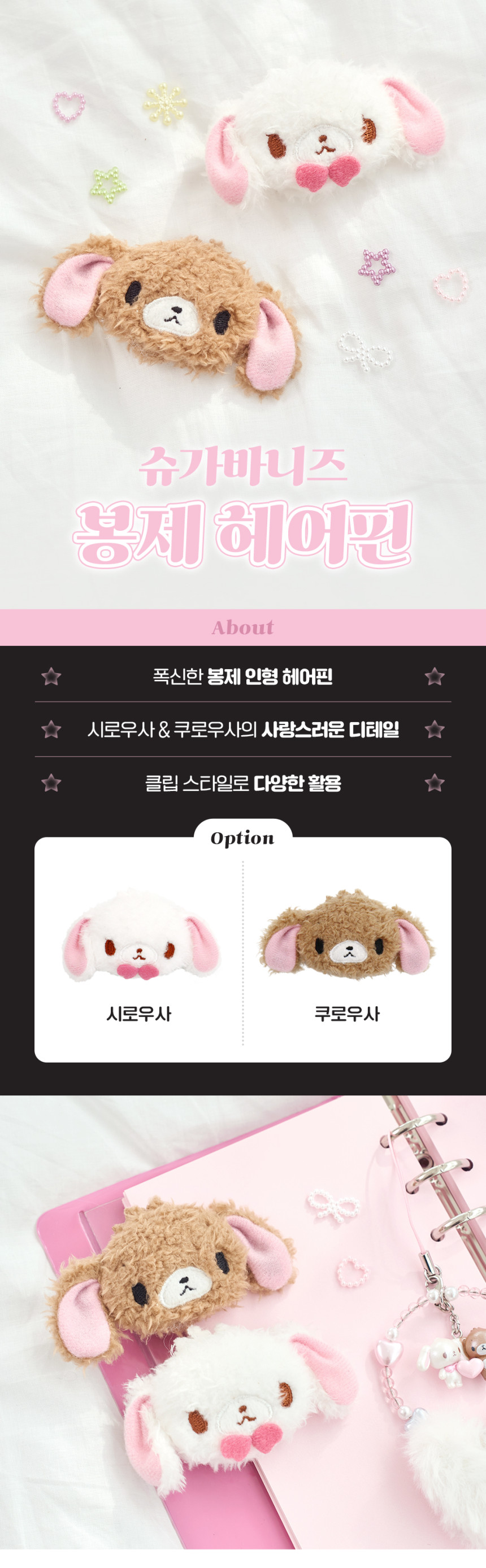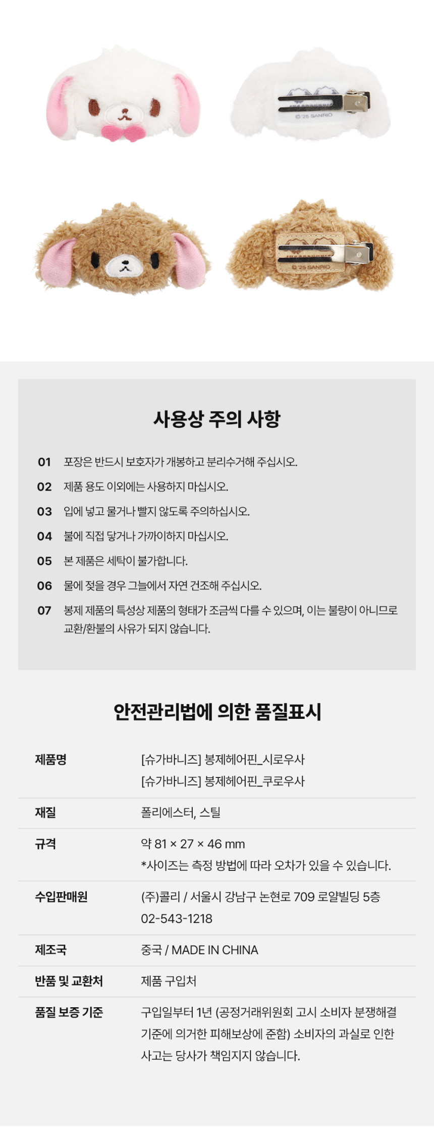 详细情报运营方针客户评论NOTICE* 商品外盒是为保护商品防止冲击而制作的,在包装/运输过程中可能会产生划痕及褶皱、变色等现象,该现象不能作为商品的退换理由。[Sugarbunnies] Plush Hair Pin (2type) PARTINFORMATION 商品情报提供告示商品名 : [Sugarbunnies] 洗脸发带 2款原产地 : China制造/进口 : 주식회사 콜리 质量保证标准 : 依照相关法律及消费者纠纷解决规定AS中心热线 : Ktown4u, 02-552-0978