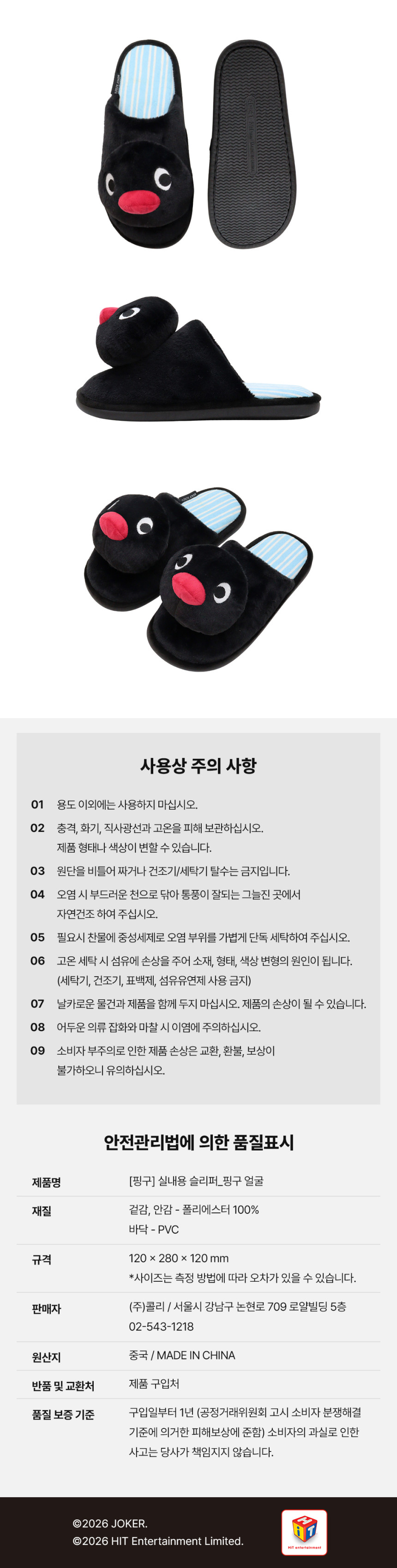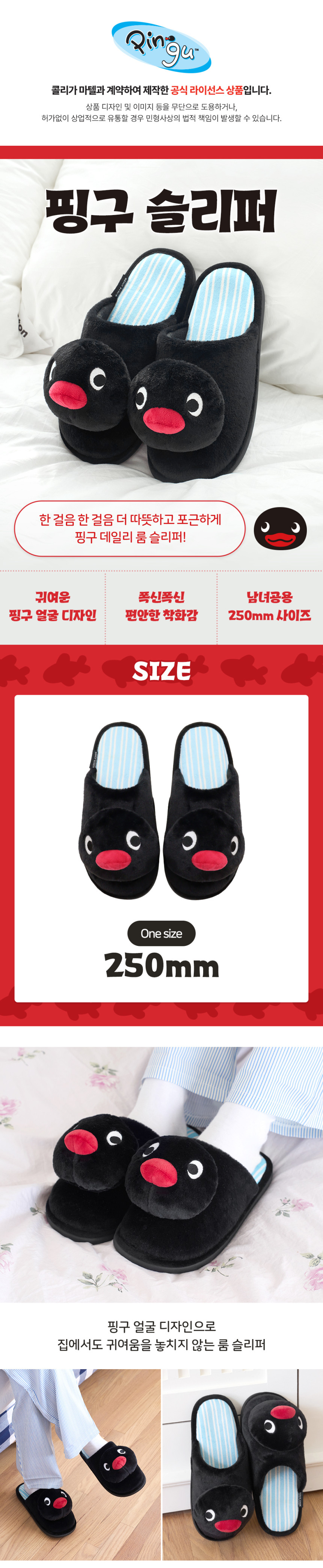 详细情报运营方针客户评论NOTICE* 商品外盒是为保护商品防止冲击而制作的,在包装/运输过程中可能会产生划痕及褶皱、变色等现象,该现象不能作为商品的退换理由。[PINGU] Indoor Slippers PART INFORMATION 商品情报提供告示商品名 : [PINGU] 室内拖鞋原产地 : China制造/进口 : 주식회사 콜리 质量保证标准 : 依照相关法律及消费者纠纷解决规定AS中心热线 : Ktown4u, 02-552-0978