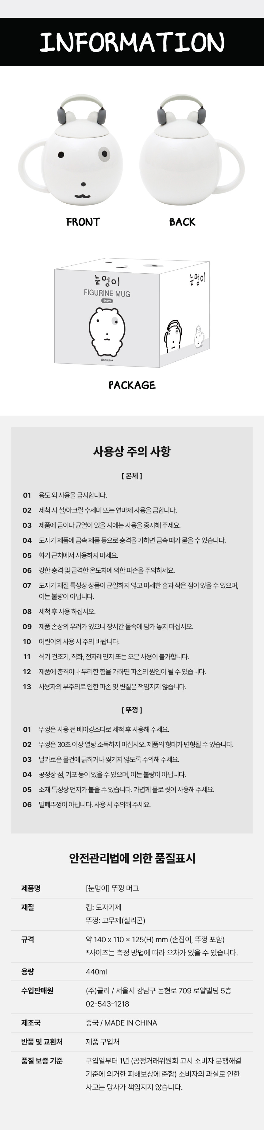 详细情报运营方针客户评论NOTICE* 商品外盒是为保护商品防止冲击而制作的,在包装/运输过程中可能会产生划痕及褶皱、变色等现象,该现象不能作为商品的退换理由。[Noonmeong] Lid Mug_Headset PART INFORMATION 商品情报提供告示商品名 : [Noonmeong] 带盖马克杯_耳机原产地 : China制造/进口 : 주식회사 콜리 质量保证标准 : 依照相关法律及消费者纠纷解决规定AS中心热线 : Ktown4u, 02-552-0978