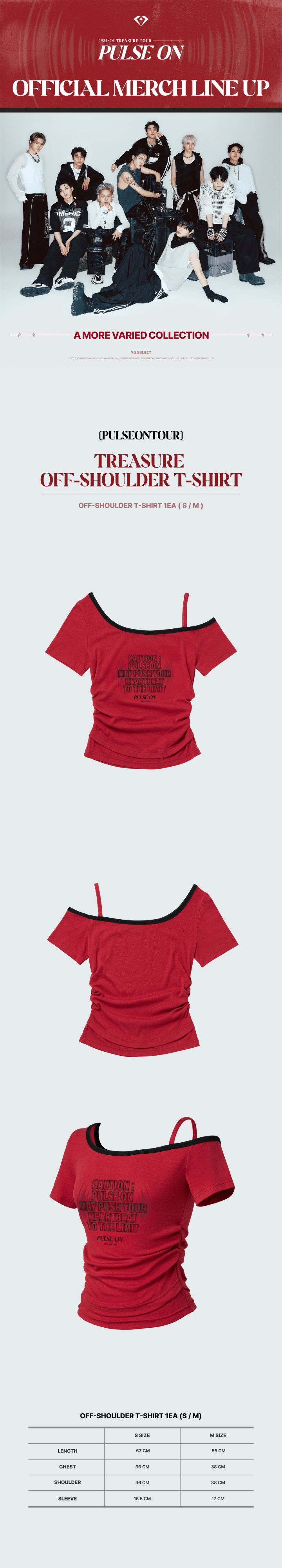 TREASURETREASURE - [PULSEONTOUR] TREASURE OFF-SHOULDER T-SHIRT RMB200.00发行日2026-03-03预计入库时间2026-03-05积分38Goods codeGD00157907售销记录2