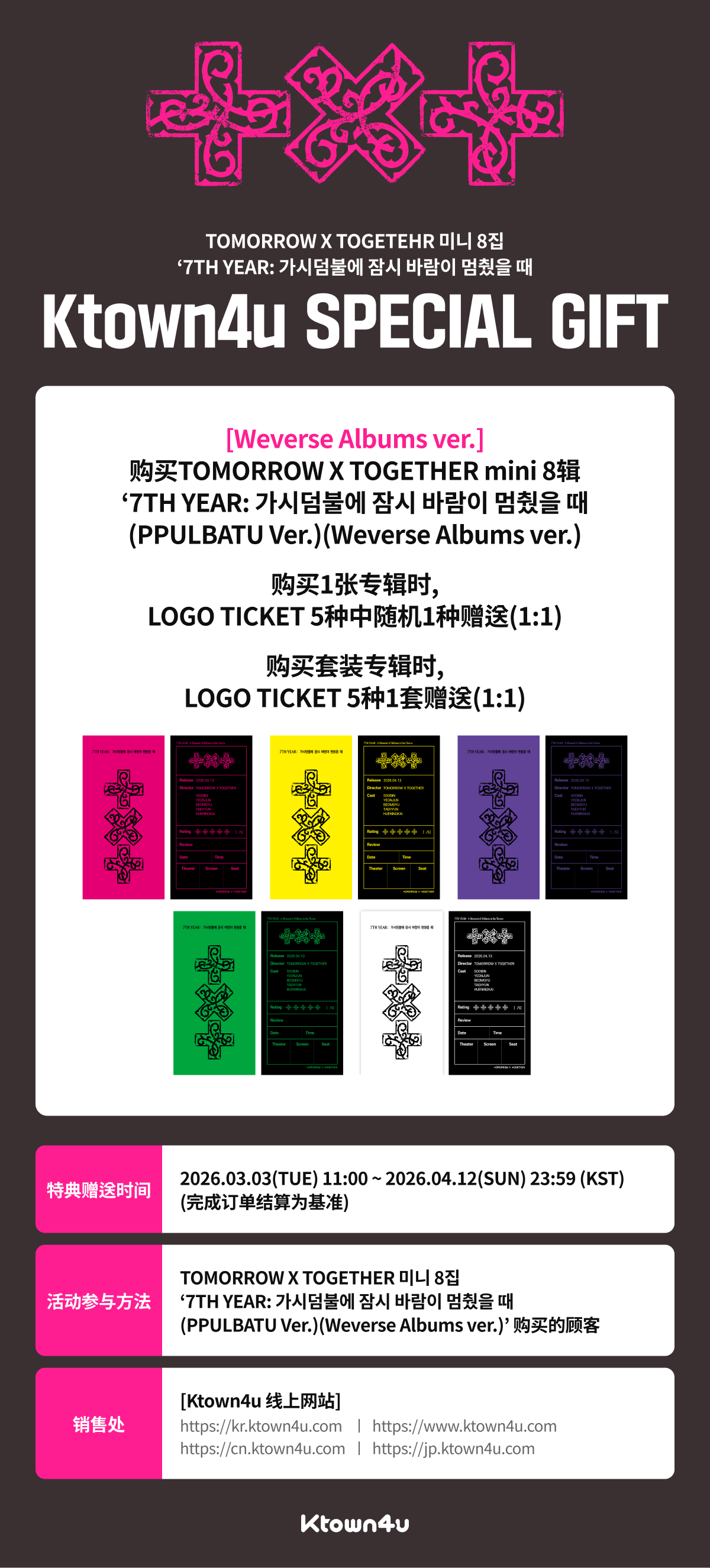 [Ktown4u特典赠送] TOMORROW X TOGETHER - [7TH YEAR: 가시덤불에 잠시 바람이 멈췄을 때] (PPULBATU Ver.) (Weverse Albums ver.) (Random Ver.)