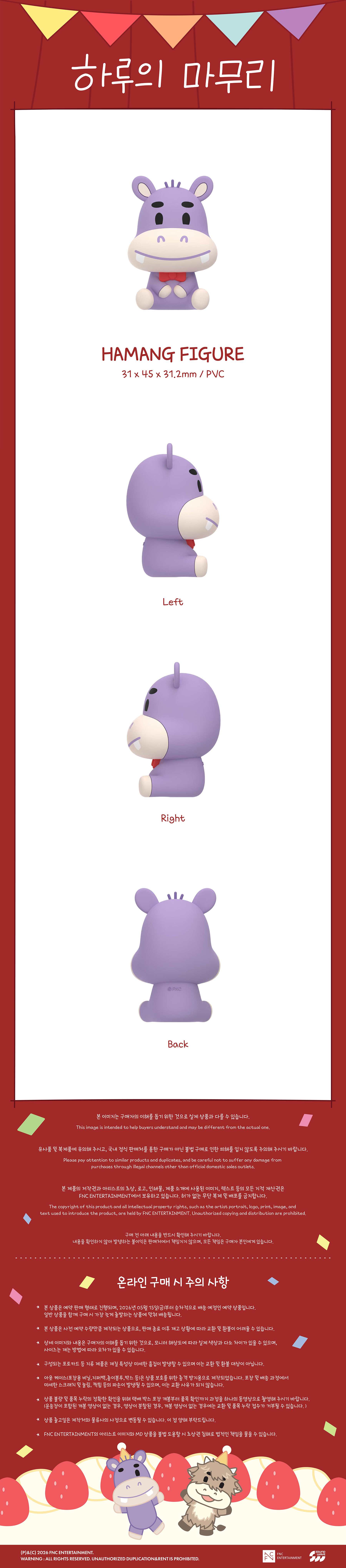 详细情报运营方针客户评论NOTICE* 商品外盒是为保护商品防止冲击而制作的,在包装/运输过程中可能会产生划痕及褶皱、变色等现象,该现象不能作为商品的退换理由。YOO HWE SEUNG (N.Flying)[Hamang&Somang MD] Hamang FIGUREPART INFORMATION 商品情报提供告示商品名 : YOO HWE SEUNG (N.Flying) - [Hamang&Somang MD] Hamang FIGURE原产地 : China制造/进口 : 质量保证标准 : 依照相关法律及消费者纠纷解决规定AS中心热线 : Ktown4u, 02-552-0978