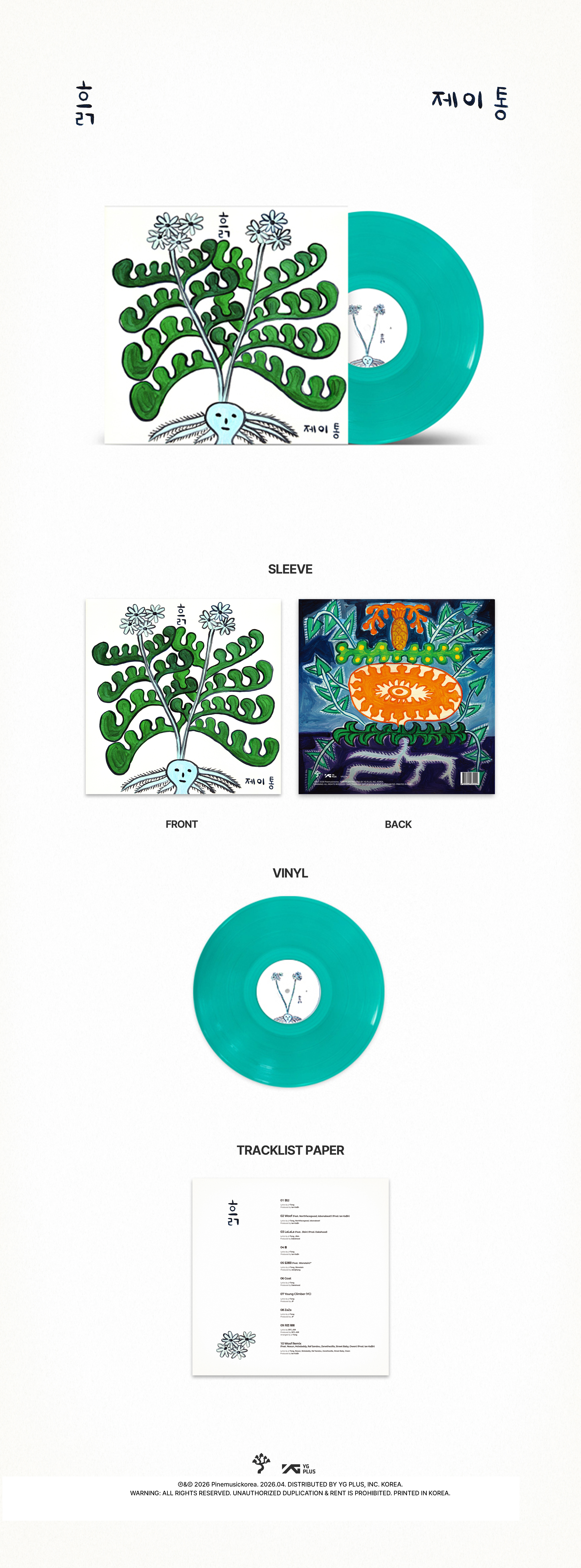 - 컬러 바이닐은 웹 이미지와 실제 색상에 차이가 있을 수 있으며, 제작 공정 시 앨범마다 색상 차이가 있을 수 있습니다. 이로 인한 반품 및 교환이 불가합니다.