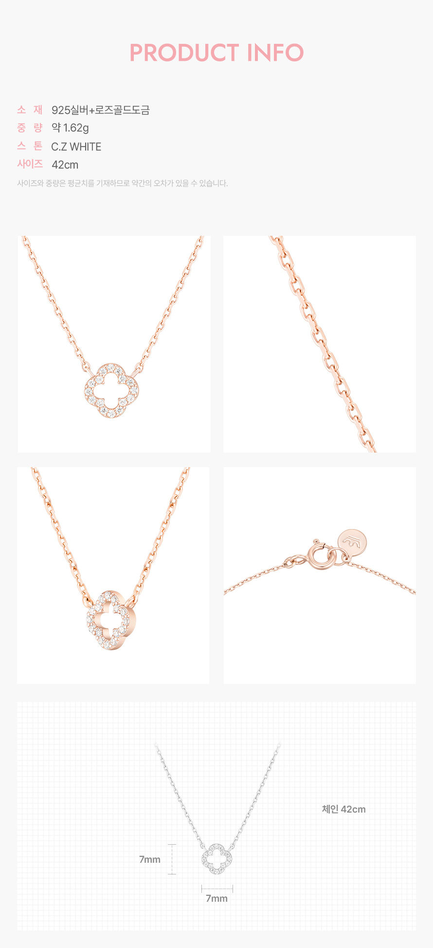 详细情报运营方针客户评论NOTICE* 商品外盒是为保护商品防止冲击而制作的,在包装/运输过程中可能会产生划痕及褶皱、变色等现象,该现象不能作为商品的退换理由。[J.ESTINA] LALA J.CLOVER Necklace_Rose Gold PART INFORMATION 商品情报提供告示商品名 : [J.ESTINA] LALA J.CLOVER 项链_玫瑰金原产地 : Korea制造/进口 : 제이에스티나 质量保证标准 : 依照相关法律及消费者纠纷解决规定AS中心热线 : Ktown4u, 02-552-0978