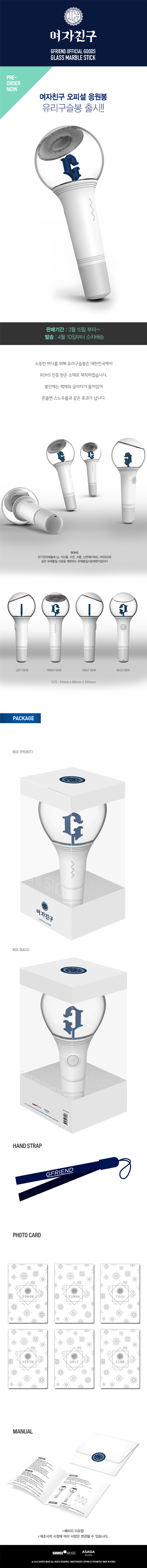 详细情报运营方针客户评论NOTICE* 商品外盒是为保护商品防止冲击而制作的,在包装/运输过程中可能会产生划痕及褶皱、变色等现象,该现象不能作为商品的退换理由。GFRIEND OFFICIAL LIGHT STICK [GLASS MARBLE STICK] Because of delivery issue, we can ship out without battery, Please note it. because of the liquid's weight inside the marble. little crack can occur, but it is not damage according to manufacturing rules. refund or return is not avaliable. 商品情报提供告示商品名 : GFRIEND - OFFICIAL LIGHT STICK [GLASS MARBLE STICK] 官方应援棒 玻璃珠棒原产地 : Korea制造/进口 : 质量保证标准 : 依照相关法律及消费者纠纷解决规定AS中心热线 : Ktown4u, 02-552-0978