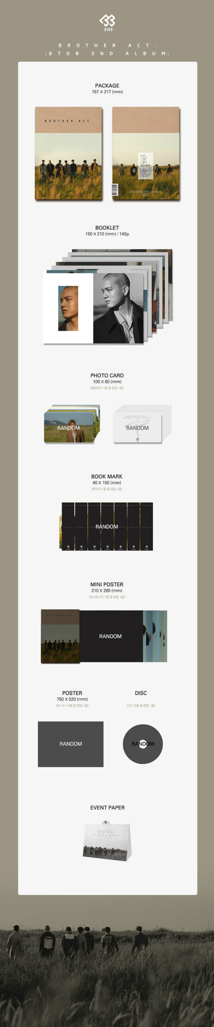 지난 3월 미니앨범 [Feel'eM]에 이어 5개월동안의 대장정의 솔로 프로젝트 [Piece of BTOB]로 멤버 개개인의 매력을 한껏 발산하며 끊임없이 팬들의 곁에서 노래를 들려주던 비투비가 정규 2집 [Brother Act.]를 가지고 컴백한다. 트렌치코트, 체크무늬 자켓으로 한층 성숙된 모습을 보여준 컨셉트 포토는 그 동안 비투비의 유쾌하고 귀여움과 극대화되는 가을 남자로 변신해 시선을 끌었다.