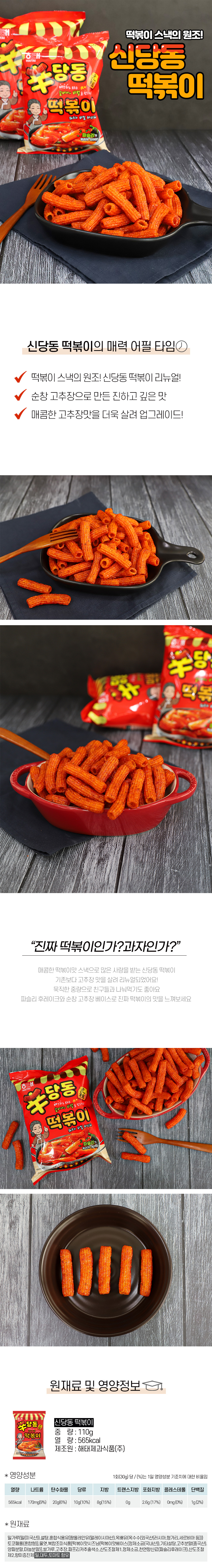 详细情报运营方针客户评论NOTICE* 商品外盒是为保护商品防止冲击而制作的,在包装/运输过程中可能会产生划痕及褶皱、变色等现象,该现象不能作为商品的退换理由。[HAITAI] Sindang-dong Tteokbokki Snack 110g 商品情报提供告示商品名 : [HAITAI] 新堂洞辣炒年糕味饼干 110g*1EA原产地 : Korea制造/进口 : 质量保证标准 : 依照相关法律及消费者纠纷解决规定AS中心热线 : Ktown4u, 02-552-0978