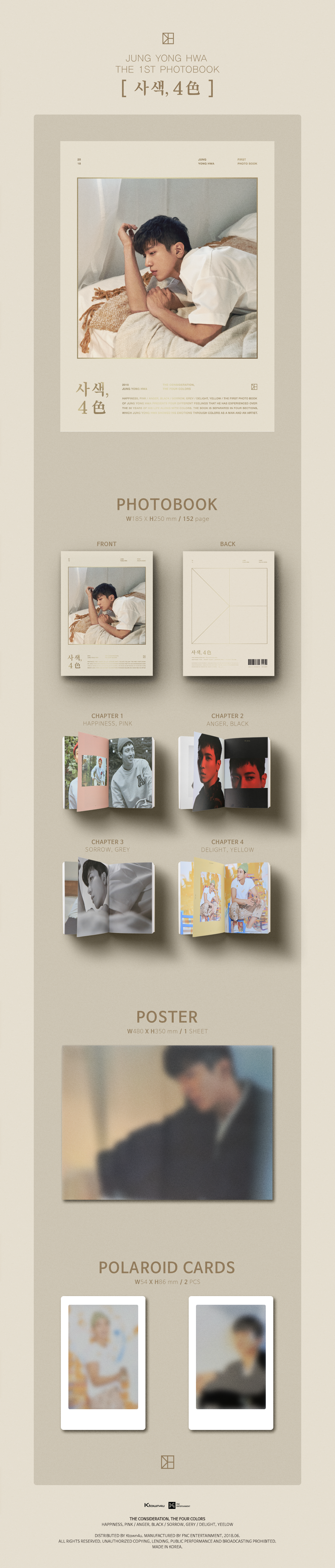 The photo book 'The consideration, the 4 colors' has 4 sections that express different emotions in 4 colors that match the emotions Jung Yong Hwa has gone through as a man, as also as an artist.