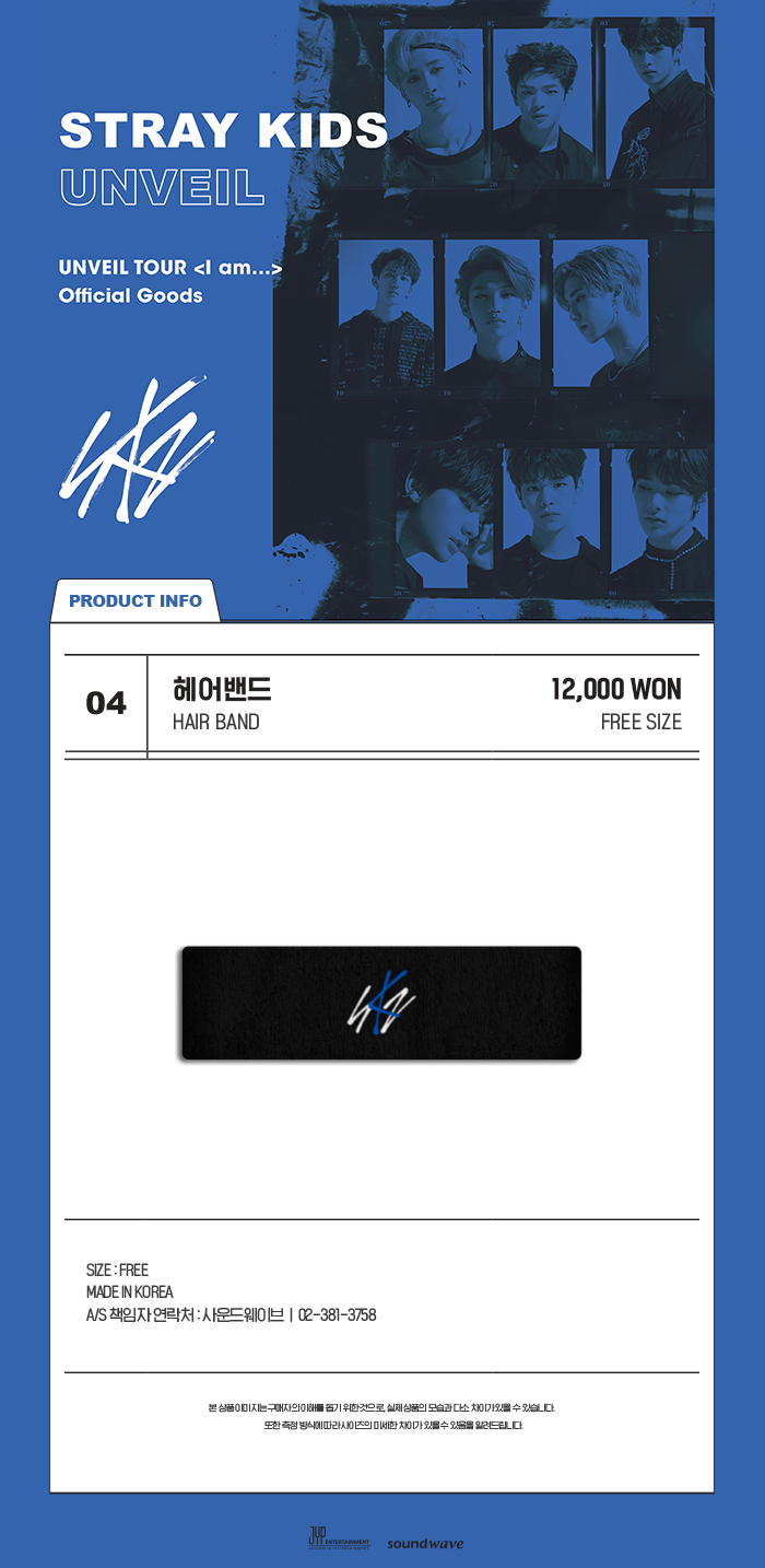 详细情报运营方针客户评论NOTICE* 商品外盒是为保护商品防止冲击而制作的,在包装/运输过程中可能会产生划痕及褶皱、变色等现象,该现象不能作为商品的退换理由。STRAY KIDS HAIR BAND [UNVEIL TOUR : I am] - Many products (Expect for Light Stick, Random Pocket, Lenticular Postcard, Box Sticker Memo) include Member Polaroid Photo 1p onpack (Member 5p, Total 45p) 商品情报提供告示商品名 : STRAY KIDS - HAIR BAND [UNVEIL TOUR : I am]原产地 : Korea制造/进口 : JYP Entertainment (주)사운드웨이브质量保证标准 : 依照相关法律及消费者纠纷解决规定AS中心热线 : Ktown4u, 02-552-0978
