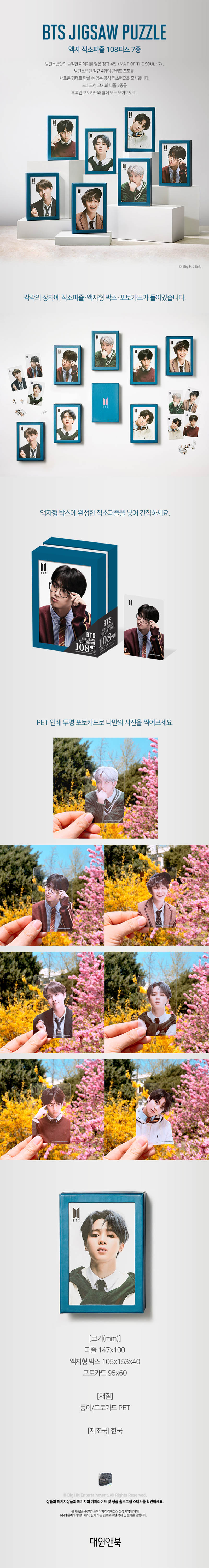 详细情报运营方针客户评论NOTICE* 商品外盒是为保护商品防止冲击而制作的,在包装/运输过程中可能会产生划痕及褶皱、变色等现象,该现象不能作为商品的退换理由。BTS Jigsaw Puzzle 108piece (RM) PART * The outer case is just for protecting goods. (scratches and discoloration on the case can not be the reason for exchanging or returning) INFORMATION 商品情报提供告示商品名 : BTS - Jigsaw Puzzle 108piece (RM)原产地 : Korea制造/进口 : 대원앤북(대원씨아이) Big Hit Entertainment(예스24공급)质量保证标准 : 依照相关法律及消费者纠纷解决规定AS中心热线 : Ktown4u, 02-552-0978