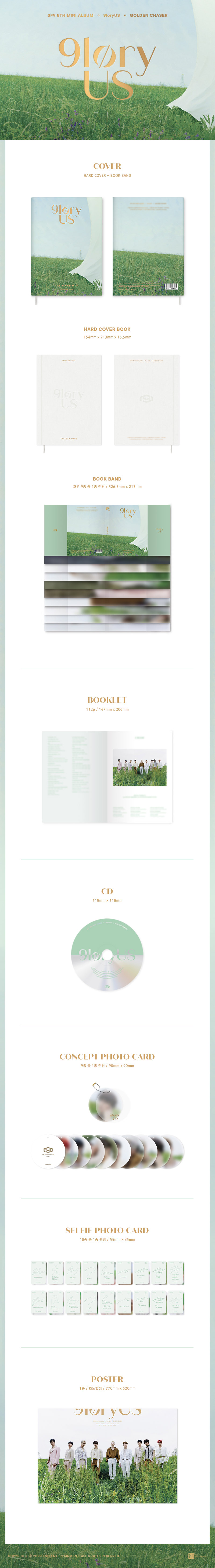 ‘9loryUS’ 앨범은 지난 1월 정규 1집 이후 약 6개월만의 신보이다. SF9은 지난 1월 타이틀곡 ‘Good Guy’로 음악방송 첫 1위를 달성하는 등 2020년 들어 가파른 상승세를 보이고 있다. 최근에는 그룹 활동과 더불어 연기, 예능, 음악방송 MC 등 각자 다방면에서 활발하게 활동하며 대중에게 눈도장을 찍고 있다.