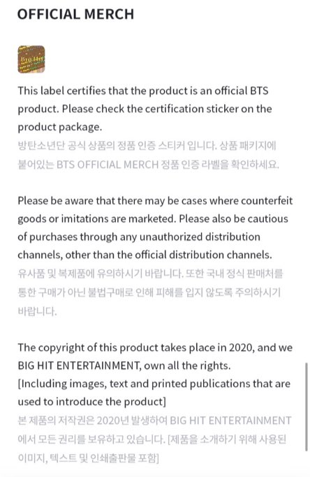 详细情报运营方针客户评论NOTICE* 商品外盒是为保护商品防止冲击而制作的,在包装/运输过程中可能会产生划痕及褶皱、变色等现象,该现象不能作为商品的退换理由。BTS Mini Photo Card PART * The outer case is just for protecting goods. (scratches and discoloration on the case can not be the reason for exchanging or returning) INFORMATION 商品情报提供告示商品名 : BTS - Mini Photo Card (*Order can be canceled cause of early out of stock)原产地 : Korea制造/进口 : 质量保证标准 : 依照相关法律及消费者纠纷解决规定AS中心热线 : Ktown4u, 02-552-0978
