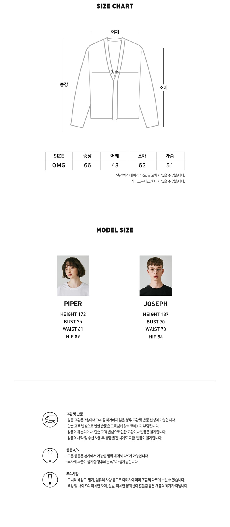 详细情报运营方针客户评论NOTICE* 商品外盒是为保护商品防止冲击而制作的,在包装/运输过程中可能会产生划痕及褶皱、变色等现象,该现象不能作为商品的退换理由。[IZRO] HEART LOGO CARDIGAN Celebrity PPL NCT127 TAEIL, JUNGWOO PPL URL : https://www.instagram.com/p/CJqFvZ3BAzB/ PART SIZE : ONE SIZE *Total lenth : 66cm *Shoulder : 55cm *Chest : 64.5cm *sleeve length : 55cm FABRIC: WOOL50% / ACRYLIC50% INFORMATION 商品情报提供告示商品名 : [IZRO] HEART LOGO CARDIGAN原产地 : Korea制造/进口 : FOURFIVE FOURFIVE质量保证标准 : 依照相关法律及消费者纠纷解决规定AS中心热线 : Ktown4u, 02-552-0978