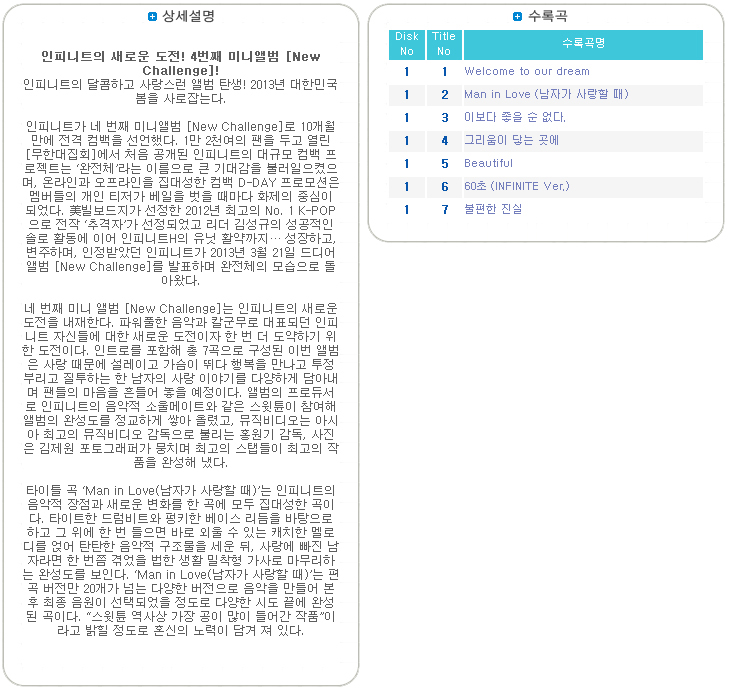 详细情报运营方针客户评论NOTICE* 商品外盒是为保护商品防止冲击而制作的,在包装/运输过程中可能会产生划痕及褶皱、变色等现象,该现象不能作为商品的退换理由。preorder by 17th March -Poster size : 77 X 52 cm 商品情报提供告示商品名 : Infinite - 迷你专辑 Vol.4 [New Challenge]原产地 : Korea制造/进口 : 质量保证标准 : 依照相关法律及消费者纠纷解决规定AS中心热线 : Ktown4u, 02-552-0978
