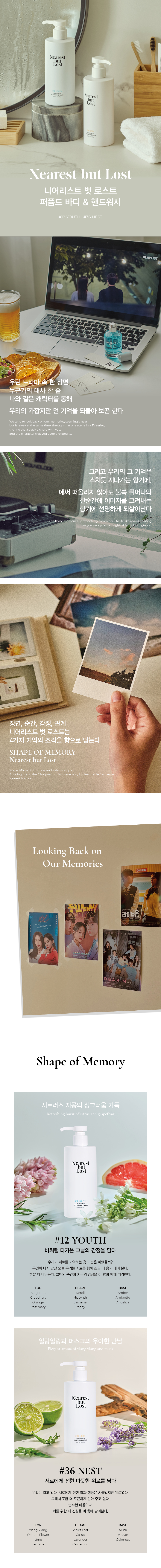 详细情报运营方针客户评论NOTICE* 商品外盒是为保护商品防止冲击而制作的,在包装/运输过程中可能会产生划痕及褶皱、变色等现象,该现象不能作为商品的退换理由。 [Nearest but Lost] PERFUMED BODY & HAND WASH 300ml PART * The outer case is just for protecting goods. (scratches and discoloration on the case can not be the reason for exchanging or returning) 香型 #youth 香型:青柠,茉莉,琥珀 #nest 香型:依兰,薰衣草,麝香 INFORMATION 商品情报提供告示商品名 : #36 NEST原产地 : Korea制造/进口 : 한국콜마(주) 플레이리스트(주)质量保证标准 : 依照相关法律及消费者纠纷解决规定AS中心热线 : Ktown4u, 02-552-0978
