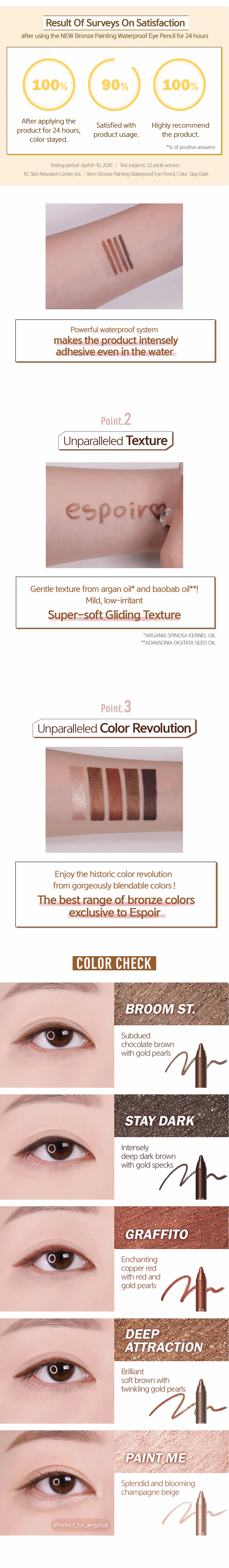 详细情报运营方针客户评论NOTICE* 商品外盒是为保护商品防止冲击而制作的,在包装/运输过程中可能会产生划痕及褶皱、变色等现象,该现象不能作为商品的退换理由。 [espoir] BRONZE PAINTING WP WATERPROOF EYE PENCIL AD PART * The outer case is just for protecting goods. (scratches and discoloration on the case can not be the reason for exchanging or returning) INFORMATION 商品情报提供告示商品名 : 【艾丝珀】细闪珠光眼线笔5款原产地 : Korea制造/进口 : 에스쁘아 씨앤씨플래닛质量保证标准 : 依照相关法律及消费者纠纷解决规定AS中心热线 : Ktown4u, 02-552-0978