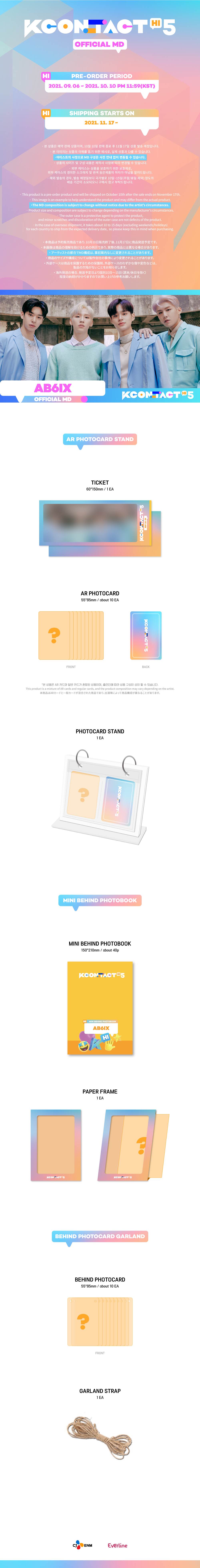 AB6IXAB6IX - 迷你幕后写真集 [KCON:TACT HI 5 OFFICIAL MD]RMB185.62发行日2021-11-17预计入库时间2021-11-29积分35Goods codeGD00067393售销记录4