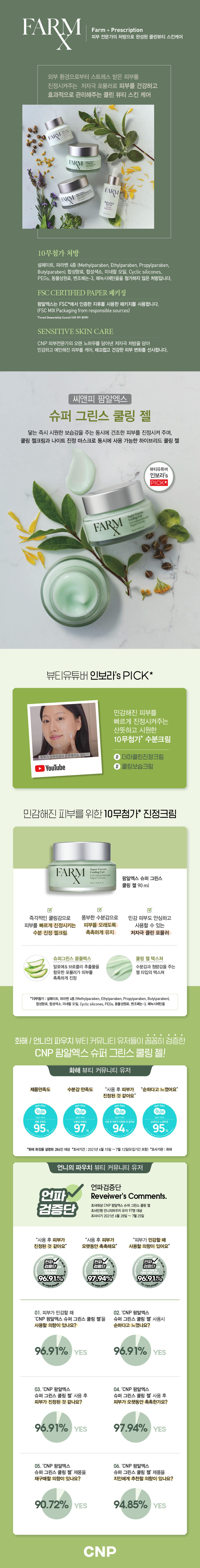 详细情报运营方针客户评论NOTICE* 商品外盒是为保护商品防止冲击而制作的,在包装/运输过程中可能会产生划痕及褶皱、变色等现象,该现象不能作为商品的退换理由。 [CNP] FARM RX SUPER GREENS COOLING GEL PART * The outer case is just for protecting goods. (scratches and discoloration on the case can not be the reason for exchanging or returning) INFORMATION 商品情报提供告示商品名 : 【希恩派】清凉保湿镇静啫喱面霜 90ml原产地 : Korea制造/进口 : (주)엘지생활건강 (주)엘지생활건강质量保证标准 : 依照相关法律及消费者纠纷解决规定AS中心热线 : Ktown4u, 02-552-0978