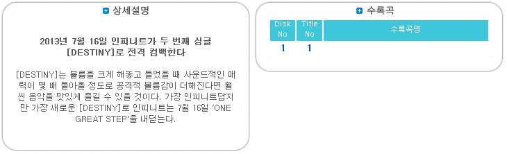 详细情报运营方针客户评论NOTICE* 商品外盒是为保护商品防止冲击而制作的,在包装/运输过程中可能会产生划痕及褶皱、变色等现象,该现象不能作为商品的退换理由。pre- order by 9th july -postcard 1p (first limited/random image)商品情报提供告示商品名 : Infinite - 单曲专辑 Vol.2 [Destiny]原产地 : Korea制造/进口 : 质量保证标准 : 依照相关法律及消费者纠纷解决规定AS中心热线 : Ktown4u, 02-552-0978
