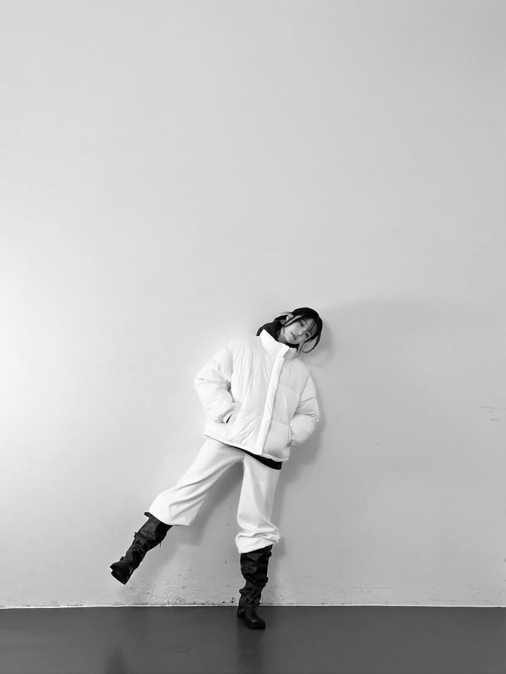 She also captivated followers with a full-body shot in front of a blue background, lightly clutching a long coat, and a monochrome image highlighting a sense of spaciousness and calm. Across all the cuts, her delicate visuals stood out, embodying the ethereal mood of winter.