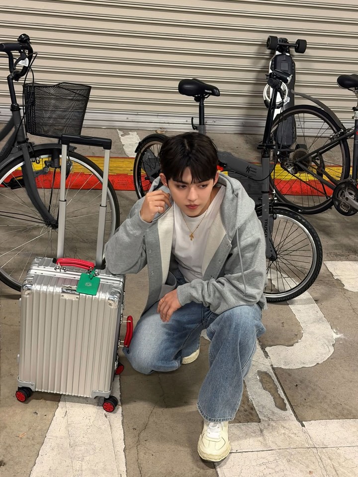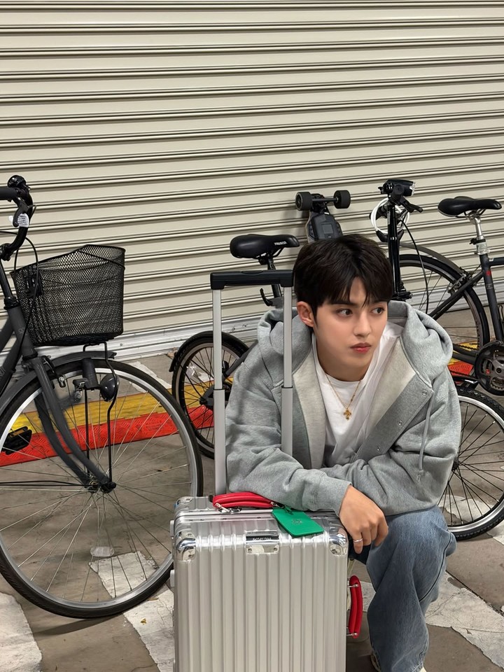 S.Coups, whether seated on his suitcase or resting his chin on the handle, turned an ordinary parking lot into a photo shoot location, inspiring fans with a growing urge to travel.