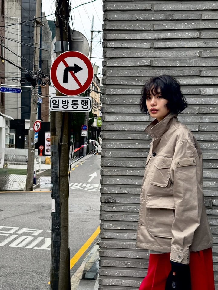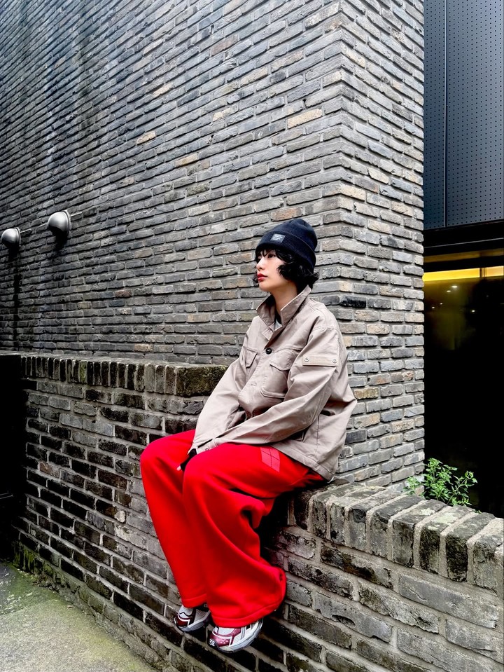 公开照片中,Nana身穿卡其色外口袋夹克,搭配鲜艳的红色长裤,塑造出强烈的街头时尚氛围。她再以黑色毛线帽和运动鞋点缀整体,兼具休闲与时尚感,展现了独特的造型实力。