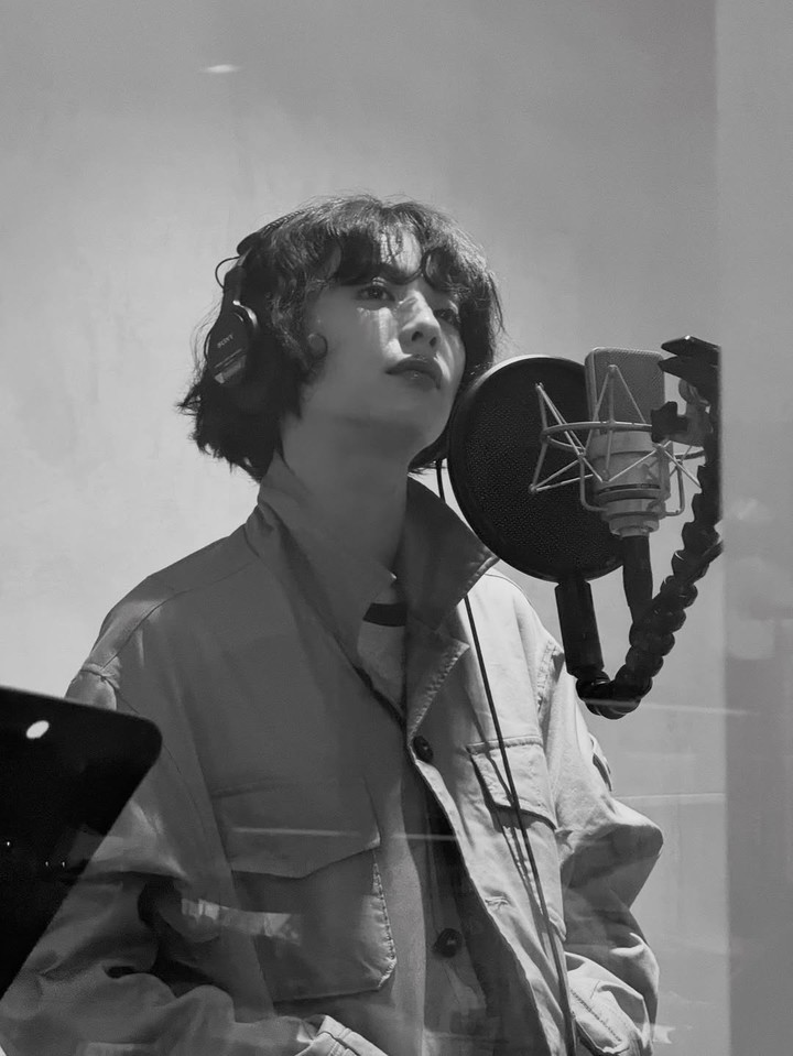 此外,在另一组黑白照片中,Nana身处录音间,戴着耳机,专注的眼神流露出自由艺术家的气质,黑白光影更烘托出浓厚的艺术氛围。