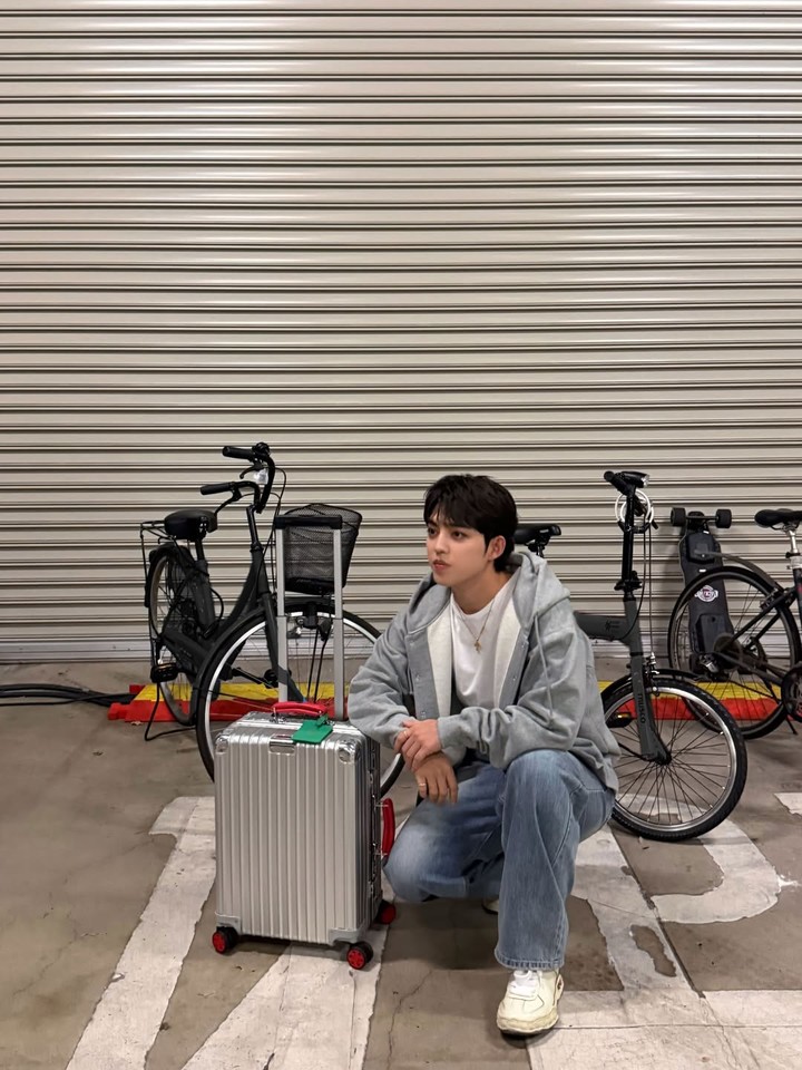 キャリーケースに寄りかかったり、ハンドルに顎を乗せてポーズをとるS.COUPSは、駐車場の一角をフォトスタジオに変身させ、ファンの旅行欲まで刺激した。