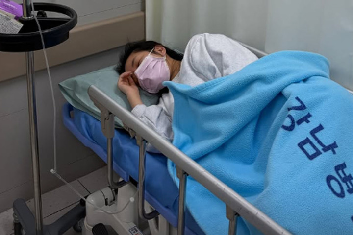 김지혜는 27일 개인 계정을 통해 "사진이 남아있다"며 한 장의 사진을 업로드했다. 공개된 사진에는 김지혜가 병실에서 수액을 맞으며 잠들어 있는 모습이 담겨 있다.