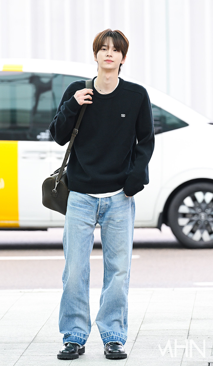 이날 투어스 신유가 출국장으로 향하고 있다.