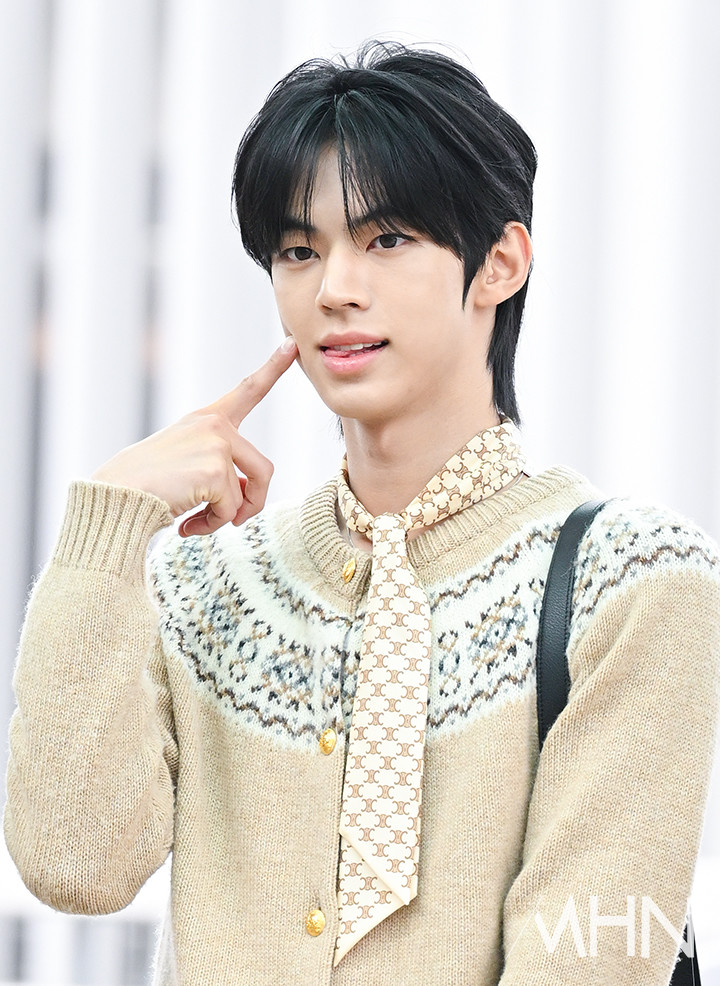 이날 투어스 도훈이 출국장으로 향하며 포토타임을 갖고 있다.